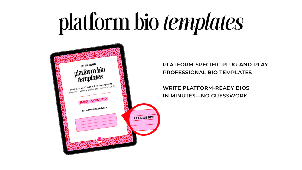 This digital workbook walks you through the same strategy Brittany J. Parks uses to help creators clarify their message, show proof of value, and write bios that work across every platform — Instagram, LinkedIn, Substack, and beyond.