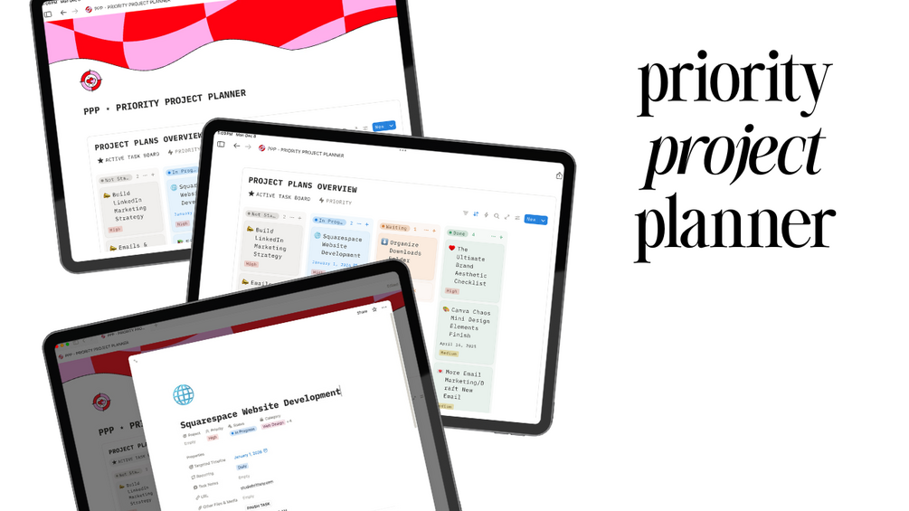Meet the Notion template that finally gets your projects out of your head, off your 47 sticky notes, and into a system that actually behaves. The Priority Project Planner (PPP) is your new command center for completing the work that matters — without losing your mind, your momentum, or your entire week to chaotic task-switching.